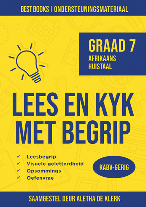 Aletha de KlerkOriginal price R 240.00 - Original price R 240.00Original price R 240.00R 240.00R 240.00 - R 240.00Current price R 240.00Die Lees en kyk met begrip-reeks vir die senior fase bied splinternuwe KABV-gerigte geskrewe en visuele tekste om leerders se leesbegrip te verster...