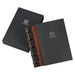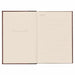 -Tactile luxury with a soft-touch dark mahogany leather ribbed spine and a hardback burgundy leather cover and back.