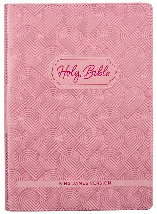 KJV Pink Hearts Faux Leather Flexcover Kids Bible (Large Print)
